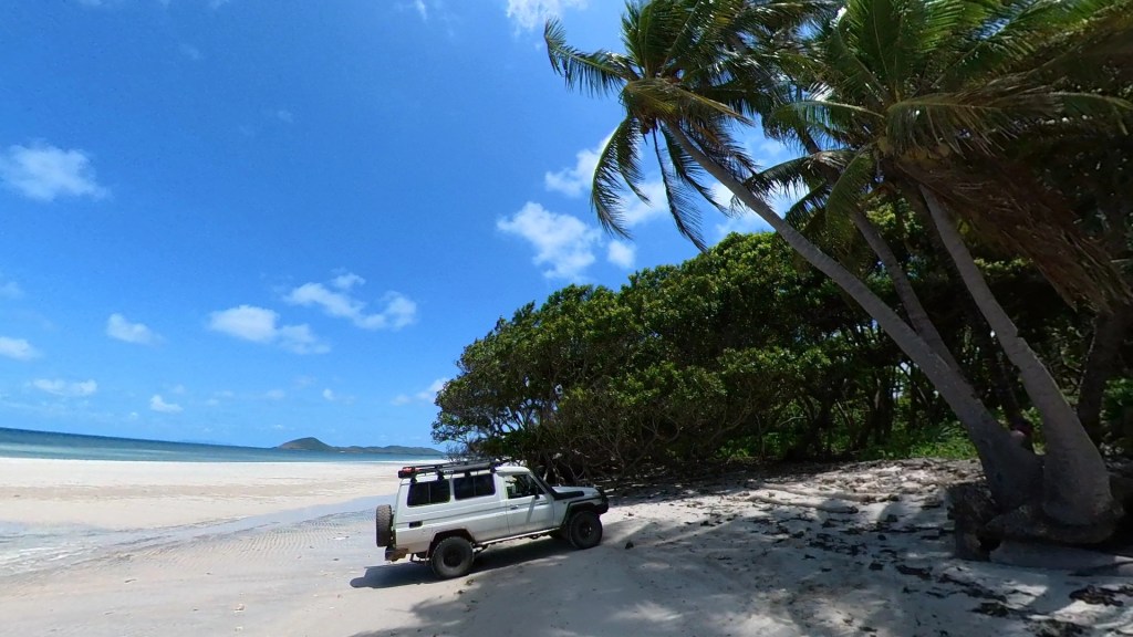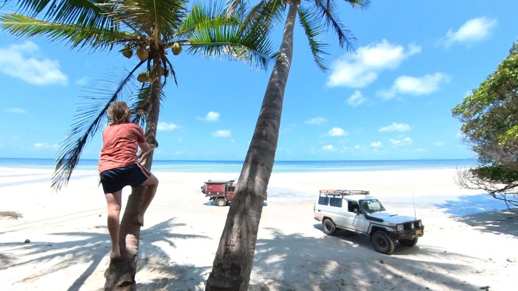 After 125 kms of twists, turns, bumps, dips and a few shallow creek crossings East of the PDR, is the stunning and tropical Chilli Beach. Chilli Beach was definitely one of James favourite places to visit. From driving down the beach to climbing a coconut tree, it was definitely a ‘must do’ on our Cape York Adventure.